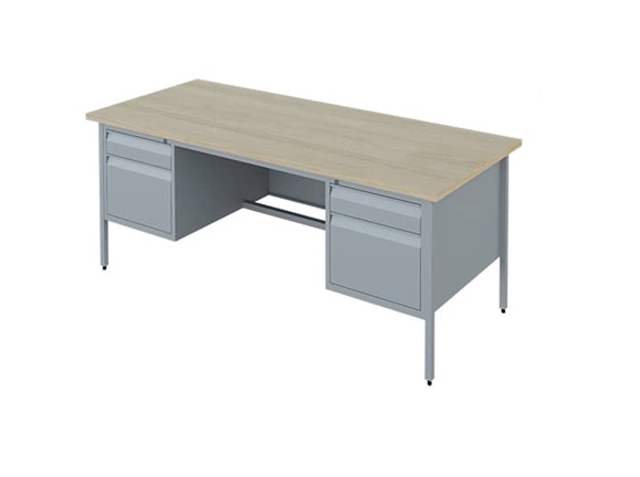 ESCRITORIO METALICO EJECUTIVO CON CUBIERTA DE MADERA ENCHAPADA EN MELAMINA DE 28 MM PARA USO RUDO COLOR A ESCOGER.